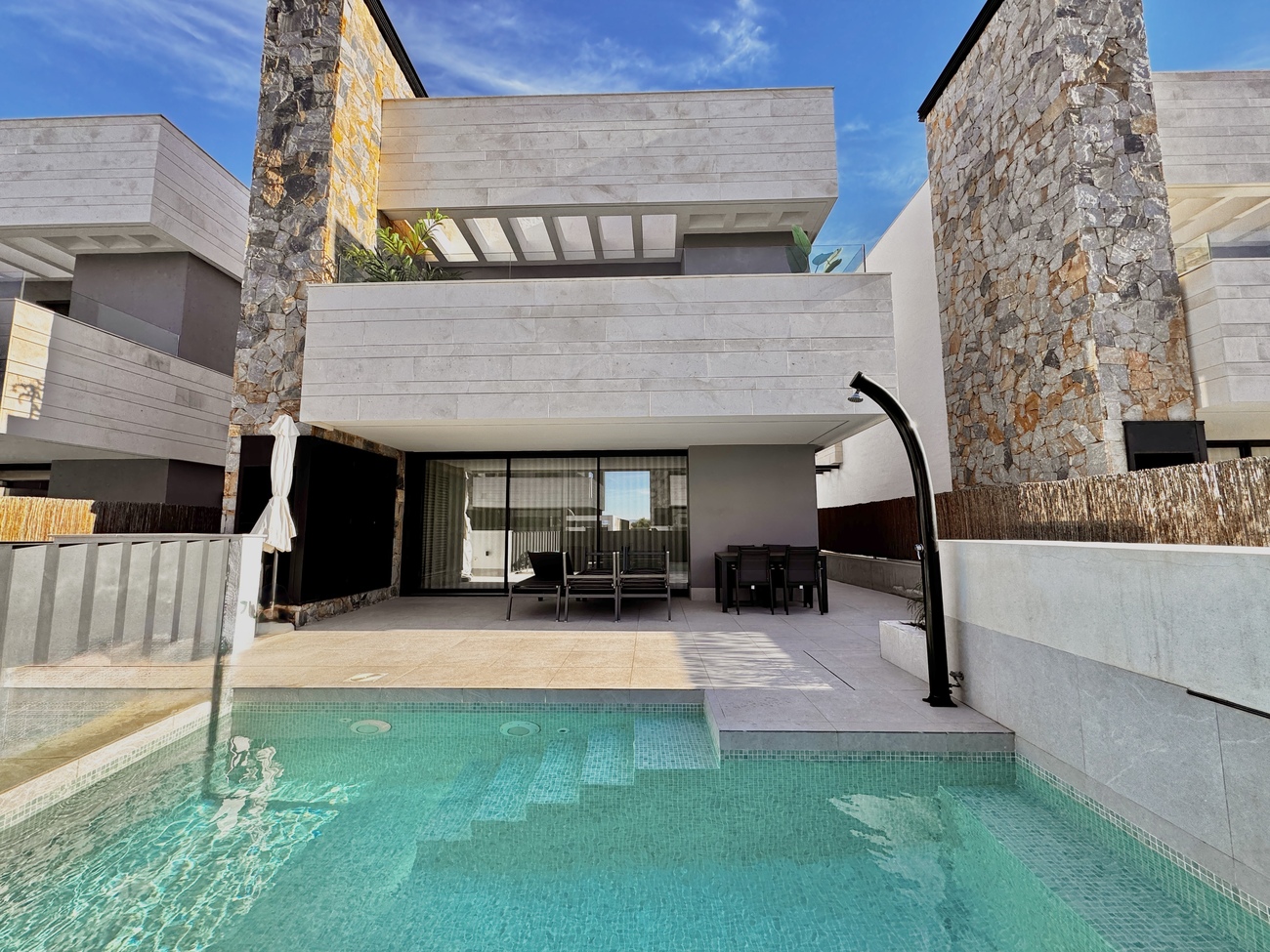 Inside the villa has a modern and open plan design with the main spaces flowing seamlessly throughout this level.